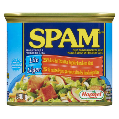 SPAM Lite 25% Less Fat than SPAM's Regular Luncheon Meat.