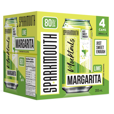 Sparkmouth non alcoholic lime margarita mocktail contains 80 calories per can. Just sweet enough!
