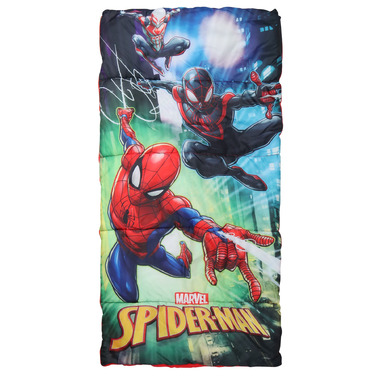 Sized just right for little ones, this Spider-Man sleeping bag with carry case duffle will be the center of attention at the next sleepover. Your child can take their Spider-Man adventure anywhere they go. The side zipper of this sleeping bag makes getting in and out easy. Great for sleepovers, watching TV, naptime and much more. Sleeping bag features your favorite characters. Set includes 1 sleeping bag and 1 carry case duffle bag. Slumber bag measures: 56" x 28" and carry case measures 8.5" x 13.5". Makes a great gift. Recommended for indoor use.