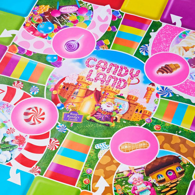 Welcome to a life-sized land of rainbow roads and sweet surprises: CANDY LAND Giant Edition! Unfold the large, 64" x 64" vinyl game board and open up your kids imaginations with illustrations of a colorful, magical CANDY LAND. In a game as big as this one, players become the movers! Spin the large Lollipop Spinner and move to that color on the board. If you reach the Peppermint Forest, Lollipop Palace, or one of the other Neighborhoods, collect a Card. Once you've collected 4 Cards, make your way up the Rainbow Road. The first player to reach King Kandy's Castle wins and gets to wear the King's foam crown! With simple rules and no reading required, CANDY LAND teaches younger kids color recognition and turn taking while letting them play in an imaginative, magical world. CANDY LAND is for 2 to 4 players, ages 4 and up.