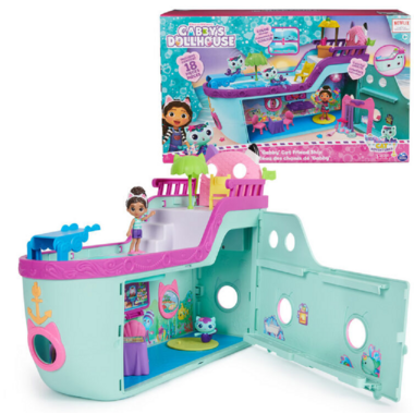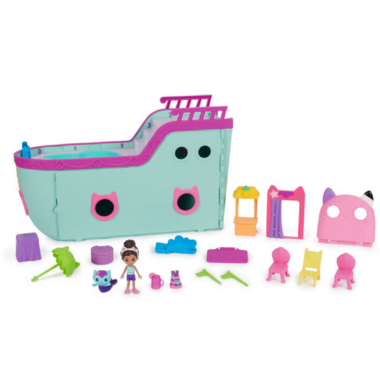 Prepare for awesome dollhouse adventures on the pretend seas, with the Gabby Cat Friend Cruise Ship! This Cruise Ship Toy comes with over 18 pieces which includes a Gabby Girl doll and MerCat figure, along with tons of dollhouse accessories and furniture! This playset is a must-have for fans of the show that enjoy creating pretend play adventures!