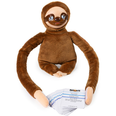 There are three slo-mo categories of play on every card: Sloth Charades (acting with the sloth hanging from your neck); Sl-Acting (slooowly acting, using the sloth as a puppet); or Sloth-Ercize (performing a specific movement). While you slowly and carefully act out your card, your teammates need to guess quickly to win the card – there’s only 45 seconds to complete the task and stop the timer! Move too fast, and the Sloth Judge will buzz you. Run out of time, and the Sloth Judge will sound a horn, giving the other team a chance to steal the guess and win the card. To win the game, be the first team to earn five cards! Act S-L-O-W and guess fast with The Sloth Game!