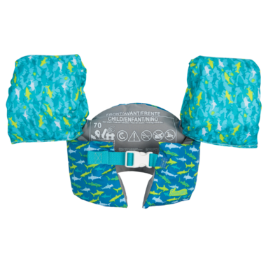 Safely bring your little one on a day of fun and water exploration with the SwimWays Swim Trainer life jacket. Learning how to swim has never been so easy and fun with this toddler life vest, featuring a shark theme. This kids life jacket is a combination of a permanent built-in safety vest and pool floaties which allow for greater mobility while your child splashes around in the water.
