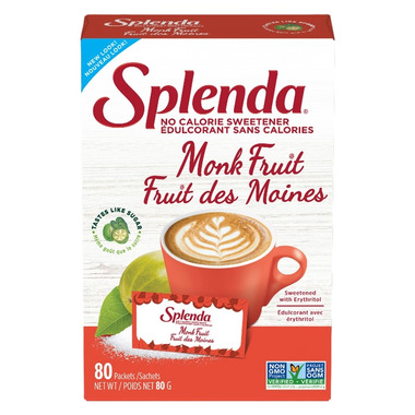 Introducing Splenda Monk Fruit - a no calorie sweetener with naturally sourced ingredients. The monk fruit, or luo han guo, is a fruit from Southeast Asia whose extract is hundreds of times sweeter than sugar. This great-tasting sweetener bakes, measures, and tastes just like sugar. It's perfect for those watching their carbs or calories, and is keto friendly.