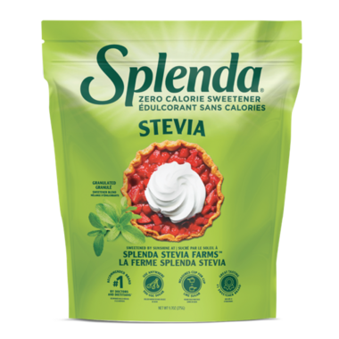 Cook, Bake, and Sprinkle with No Added Sugar! Use SPLENDA Stevia Sweetener, Granulated just like sugar it measures cup for cup in cooking, baking, and beverages. With SPLENDA Stevia Sweetener, you can significantly reduce the calories and carbohydrate that sugar adds! A cup of SPLENDA Stevia Granulated Sweetener has fewer calories than a cup of sugar, so with SPLENDA Sweetener Products you can have your cake and eat it too!