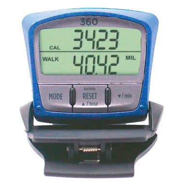 Accurately measures steps, distance and speed. Tracks calories burned and exercise time. "Smart Timer" starts and stops when you do. Recalls 7 days of activity. Unit flips down for easy viewing. Switches from walking to running mode automatically.