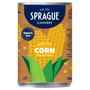 Sprague Cannery quality pressure-cooked corn. Ready to serve whole kernel corn.