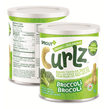Sprout Organic Curlz Baked Toddler Snacks Broccoli. Curly, crunchy, cant get enough! Sprout Organic Curlz is the first plant-powered snack for toddlers, made from organic chickpeas and lentils and baked to perfection with savory broccoli. Toddlers will love this fun finger food that brings delicious and nutritious together. Sprout Wholesome Snacking Made Fun!