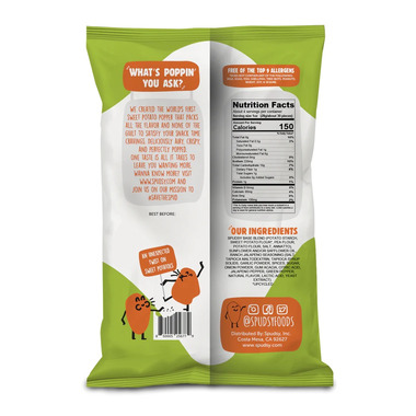 potato Starch, Vegetable Oil (Contains One Or More Of The Following: Safflower, Sunflower, Cnaola), Potato Flour, Sweet Potato Flour*, Salt, Tapioca Maltodextrin, Tapioca Syrup Solids, Garlic Powder, Speices, Sugar, Onion Powder, Gum Acacia, Annatto, Citric Acid, Jalapeno Pepper, Green Pepper, Natural Flavor, Lactic Acid, Yeast Extract.