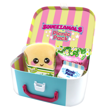 Squeezamals are the softest, cutest plush you've ever held! They are made of a super-squishy material, so when you squeeze them down you can watch them form back to life! You have to feel them for yourself. Why Squeezamals? They're squishy, squeezable, cute, soft and adorable! The Picnic Pack box is made of sturdy cardboard and can be reused for pretend play! Kit includes 4 exclusive Squeezamals: 1 medium plush, 1 small plush and 2 micro plush all in cute picnic themed packaging.