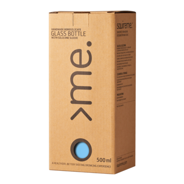Keep your drink of choice fully protected and at your side all day long with this Super light, incredibly strong, lab-quality Squireme Borosilicate Blown Glass Water Bottle. It comes in an easy-grip silicone sleeve, in a range of attractive colours. Glass is the ideal material for storage of drinking water as it does not impart undesired tastes which metal or plastic will. Let's leave plastic behind with recyclable glass and biodegradable silicone!