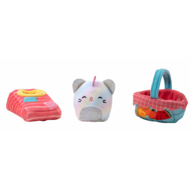Hop into the Squishville plush toy world with the Mini Plush Picnic Accessory Set. This adorably squishy accessory set features your favorite Squishmallows plush characters in a mini 2-inch size. Squeeze your Mini-Squishmallows plush in and out of hilarious places in this adorable picnic. The plush Squishville toy world is made with super-soft marshmallowy filling making it the coziest place on earth. Customize and decorate your Squishville plush toy world with the plush picnic. This playset comes with 2 accessories, a basket and corn hole. Add Camilla, a Squishmallows plush favorite to your world of squish in its new 2-inch size. With vehicles, playsets, and your favorite Squishmallows plush characters, the Squishville plush world is bursting with squish-ibilities.