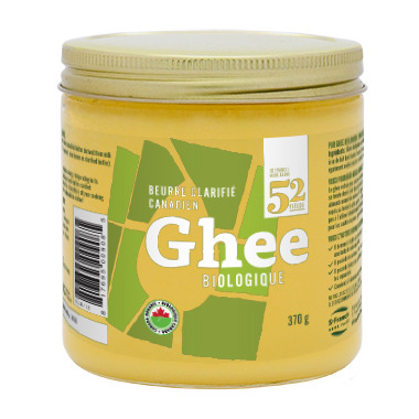 Ingredients: Canadian Organic Ghee  (unsalted butter derived from milk with all water and milk solids removed; also known as clarified butter).