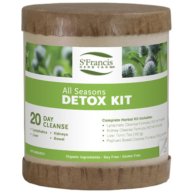 St. Francis Herb Farm All Seasons Detox Kit is a 20 day clean for your Lymphatics, Kidneys, Liver and Bowel.