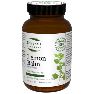 Medicinal Ingredients: 250mg per capsule. A 5:1 concentration, each capsule contains the equivalent of 1250 mg of dried Certified Organic Lemon Balm (Melissa officinalis, herb top) Non-Medicinal Ingredients: Hypromellose (vegicap), Certified organic maltodextrin. Alcohol free.