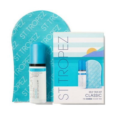 The St.Tropez Self Tan Classic Mini Kit includes their original and award-winning Classic Bronzing Mousse in a travel-friendly size and a Luxe Applicator Mitt - essentials for achieving a healthy, golden tan.