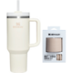 Stanley The Quencher Cream Tumbler & Sand Boot + Straw Cover Bundle