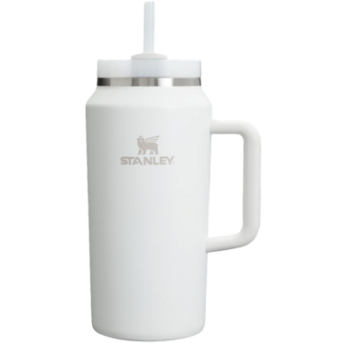 Constructed of recycled stainless steel for sustainable sipping, this 64 oz Quencher H2.0 offers maximum hydration with fewer refills. Commuting, studio workouts, day trips or your front porch, you'll want this tumbler by your side. Thanks to Stanley's vacuum insulation, your water will stay ice-cold, hour after hour. The advanced FlowState lid features a rotating cover with three positions: a straw opening designed to resist splashes while holding the reusable straw in place, a drink opening, and a full-cover top. The ergonomic handle includes comfort-grip inserts for easy carrying, and the narrow base fits just about any car cup holder.