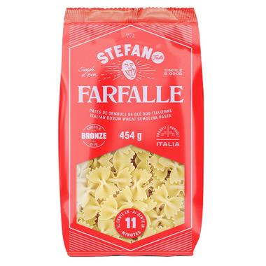 Farfalle, butterflies in Italian, are cute and versatile. They’re great with all sauces but here’s a little secret: they have a soft spot for anything creamy.