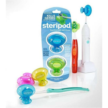 Steripod is a clip-on toothbrush protector that fits any standard or electric toothbrush and keeps your toothbrush smelling fresh & clean for up to 3 months. No cables or batteries required!