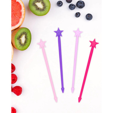 Make food stacks of fun with Lunch Punch Stix food kebab sticks! Create irresistible, edible combinations of fun stacked on a star topped kebab Stix, and in just moments turn lunch from dull to devoured! Choose a favourite colour from the rainbow of Stix colours and slide on a mix of delicious food combinations to tempt the fussiest of eaters. Stix are carefully designed to fit in all popular bento lunch boxes and they're just the right size for school and party food share platters too. Popular food combinations include a rainbow of seasonal fruits, veggies, cheese and meat and cut squares of sandwiches.