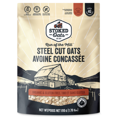 Stoked Oats Run of the Mill Steel Cut Oats are organic and gluten free with 5g of protein per serving.