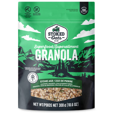 GF Organic Rolled Oats, Coconut Oil, Oat Flour, Almonds, Walnuts, Pumpkin Seeds. Honey, Flax seed and Maple Syrup.