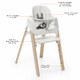 Stokke Steps is a 5-in-1 Seating System designed to accommodate your child's needs every step of the way. This simple to use concept offers a wide range of ergonomic seating; from the comfortable bouncer with unique cradling motion, to the functional high-chair and later, the modern Scandinavian design chair that can be used throughout childhood. Includes Steps chair, baby set, tray and cushion.