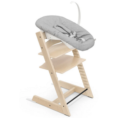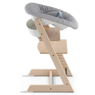The Tripp Trapp High Chair + Newborn Set bundle brings your baby to the dining table from birth. Newborn Set attachment is suitable from newborn up to 9kg / 20lb. Newborn Set is angle adjustable with a 5-point safety harness & shoulder pads for comfort, Toy Hanger is included. Tripp Trapp High Chair has depth and height adjustable seat & footplate.