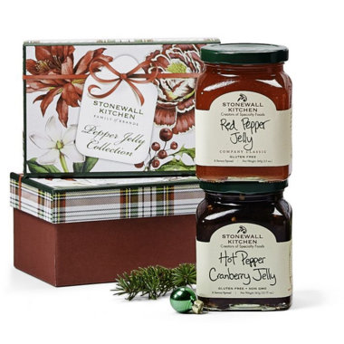 Warm up your holidays and get-togethers with family and friends with this duo of tasty Pepper Jellies. Full of great flavor and perfect for quick appetizers, this tasty pair can also spruce up dressings or be used as a glaze. Boxed in signature Stonewall Kitchen holiday packaging, it's easy to give the gift of good taste this holiday season.