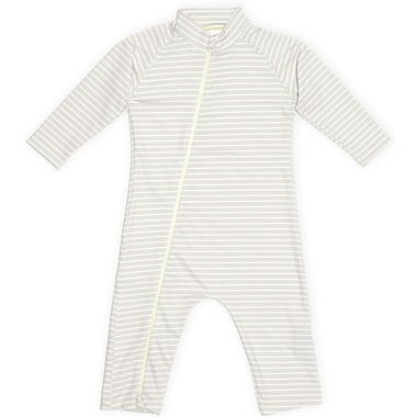 No need to slather your baby with chemicals this summer. Keep the sun out and your baby safe with our fun sun suits. Made with 100% chemical-free, UPF 50 fabric, this versatile sun suit will become a closet staple in no time. Plus, potty breaks and diaper changes are a breeze thanks to the full-length zipper!Give your little one full-body coverage and protection from the sun (including the neck!) in seconds: just zip up their suit and they're ready to go out and play. Perfect for the pool, the beach, the water park or just a picnic: our prints and colors stay vibrant wash after wash.Chemical-free UV protection that lasts: The tight-knit fabric is what keeps this sun suit effective. That means that no matter how many times you wash it, it'll protect your little one from the harsh sun without exposing them to harmful substances.Easy bathroom breaks: The two-way, full-length zipper makes potty breaks and diaper changes fast and stress-free. No need to fumble with buttons!