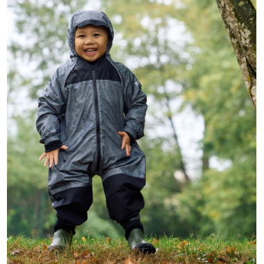 Perfect for jumping over puddles and discovering secret creeks, Stonz colorful 100% waterproof rain suits for toddlers will keep up with your little explorer even in stormy weather. Easy to throw over whatever they’re already wearing, this coverall style rain suit's loose fit lets your toddler move freely and enjoy fun in the rain.