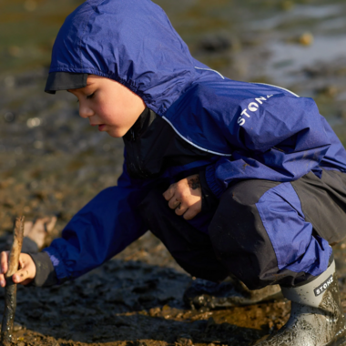 Perfect for jumping over puddles and discovering secret creeks, Stonz colorful 100% waterproof rain suits for toddlers will keep up with your little explorer even in stormy weather. Easy to throw over whatever they’re already wearing, this coverall style rain suit's loose fit lets your toddler move freely and enjoy fun in the rain.
