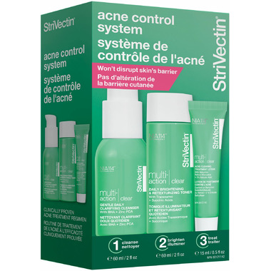 The Multi-Action Clear Collection is a 3-step acne-control system that delivers powerful yet gentle complexion-clearing results without disrupting skins barrier - clinically proven. Powered by NIA-114, StriVectin's patented form of Niacin, to avoid uncomfortable dryness commonly associated with typical acne treatments.