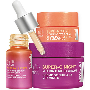 Vitamin-C Serum: Aqua (Water, Eau), Sodium Ascorbyl Phosphate, Glycereth-7 Triacetate, Pentylene Glycol, Polysorbate 20, Dipropylene Glycol, Glycerin, Dimethyl Isosorbide, Ascorbyl Glucoside, Ascorbic Acid, Malpighia Glabra (Acerola) Fruit Juice, Retinol, Sodium Hyaluronate, Myristyl Nicotinate, Tamarindus Indica Seed Polysaccharide, Orobanche Rapum Extract, Malus Domestica Fruit Cell Culture Extract, Camellia Sinensis Leaf Extract, Xylitylglucoside, Bacillus/Sea Salt Ferment Filtrate, Hydroxymethoxyphenyl Decanone, Anhydroxylitol, Adenosine, Xylitol, Glucose, Ethylhexylglycerin, Lecithin, Xanthan Gum, Acrylates/C10-30 Alkyl Acrylate Crosspolymer, Propanediol, Maltodextrin, Rhizobian Gum, Mica, Parfum (Fragrance), Limonene, Linalool, Geraniol, Citral, Citronellol, Benzyl Benzoate, Chlorphenesin, Phenoxyethanol, BHT, BHA, Sodium Benzoate, Potassium Sorbate, CI 77491 (Iron Oxides), CI 77891 (Titanium Dioxide) [ILN 60078] Super-C Eye Cream: Aqua/Water/Eau, Dimethicone, Caprylic/Capric Triglyceride, Glycerin, C12-15 Alkyl Benzoate, Propanediol, Glyceryl Stearate, PEG-100 Stearate, Myristyl Nicotinate, Stearyl Alcohol, Myristyl Myristate, Isocetyl Stearate, Pentylene Glycol, Hydrogenated Ethylhexyl Olivate, Arachidyl Alcohol, Bis-stearyl Dimethicone, Tetrahexyldecyl Ascorbate, Ipomoea Batatas Root Extract, Rosa Canina Fruit Oil, Fucus Vesiculosus Extract, Arachidyl Glucoside, 1,2-Hexanediol, Methylpropanediol, Behenyl Alcohol, Xanthan Gum, Acrylamide/Sodium Acryloyldimethyltaurate Copolymer, Panthenol, Polysilicone-11, Isohexadecane, Caprylhydroxamic Acid, Synthetic Fluorphlogopite, Hydrogenated Olive Oil Unsaponifiables, Titanium Dioxide (CI 77891), Disodium EDTA, Hydrolyzed Hyaluronic Acid, Mica, Polysorbate 80, Iron Oxide (CI 77492), Ascorbyl Methylsilanol Pectinate, Sorbitan Oleate, Hexylene Glycol, Caprylyl Glycol, Iron Titanium Oxide, Sodium Sulfate, Tin Oxide, Tocopherol [ILN 231121] Super-C Night Cream: Water/Aqua/Eau, Trimethylolpropane Tricaprylate/Tricaprate, Propanediol, Caprylic/Capric Triglyceride, Caprylic/Capric/Myristic/Stearic Triglyceride, Dimethicone, Cetearyl Alcohol, 3-o-Ethyl Ascorbic Acid, Bis-Stearyl Dimethicone, Hydrogenated Ethylhexyl Olivate, Glyceryl Stearate, Pentaerythrityl Distearate, Cetyl Palmitate, Myristyl Nicotinate, Stearoxymethicone/Dimethicone Copolymer, Ferulic Acid, Kojic Dipalmitate, Acetyl Tetrapeptide-2, Trimethylpentanediol/Adipic Acid Copolymer, Ergothioneine, Ananas Sativus (Pineapple) Fruit Extract, Tephrosia Purpurea Seed Extract, Butyrospermum Parkii (Shea) Butter, Adenosine, 1,2-Hexanediol, PEG-40 Stearate, Polysilicone-11, Hydroxyethyl Acrylate/Sodium Acryloyldimethyl Taurate Copolymer, Ceteareth-20, Isohexadecane, Tetrahydrodiferuloylmethane, Fragrance (Parfum), Caprylhydroxamic Acid, Hydrogenated Olive Oil Unsaponifiables, Tocopheryl Acetate, Xanthan Gum, Disodium EDTA, Polysorbate 60, Cyclodextrin, Mannitol, Sorbitan Isostearate, Limonene, Aminomethyl Propanol, Linalool, Benzyl Benzoate, Geraniol, Yellow 5 (CI 19140), Red 40 (CI 16035) [ILN 231117]