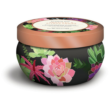 This exotic travel candle comes in a gorgeous reusable tin container and is filled with the aromatic and refreshing fragrance of Tropical & Citrus Fruits. Embellished with metallic accents, this soy wax blend candle tin is the perfect comfort item for your next getaway.