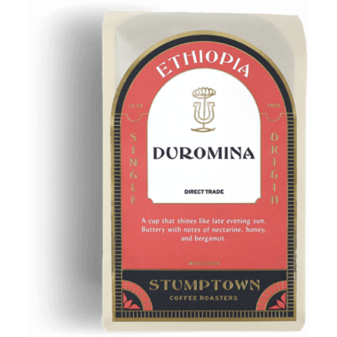 Stumptown Coffee Roasters Ethiopia Duromina Coffee Beans are whole and direct traded. A cup that shines like late evening sun. Buttery with notes of nectarine, honey, and bergamot.