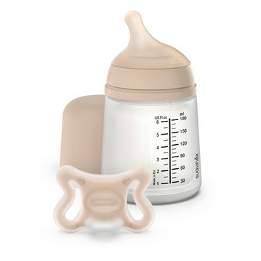 Say hello to the Zero.Zero bottle and pacifier set, the revolutionary best-selling baby bottle and pacifier from Spain! Whether you're breastfeeding, supplementing with formula or mixed-feeding, this bottle is for you. Designed for your little ones first feeding experiences, this bottle was specifically crafted for newborns to most closely resemble natural breastfeeding and work for you no matter what. Sometimes, nursing journeys take unexpected turns, but with Zero.Zero you'll always be prepared. Their unique asymmetrical nipple, off-center vent, collapsing silicone bag and adaptable flow expertly mimics the natural function of mammary glands, so you can easily switch between breast and bottle without nipple confusion or bottle rejection. Plus, the bottle's breastfeeding-like consistency means you can always return to the breast if desired. They believe every family should have options when it comes to feeding their little one, which is why their bottle is designed to suit every preference. Zero.Zero stands for zero colic and zero nipple confusion, making it the perfect bottle for a worry-free feeding experience, no matter which route you take. Whether you're exclusively breastfeeding, supplementing with formula, or doing a bit of both, the Zero.Zero bottle is your new best friend. Available as a set, you can say goodbye to the hassle of finding the perfect bottle and pacifier combination for your child. With a shared shape, shade and feel between bottle and pacifier, this seamless system is designed to work together to streamline your feeding experience.