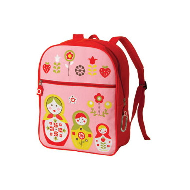 Made from durable nylon canvas and features Matryoshka Doll, the popular Russian icon. The Zippee Back Pack has a sturdy zippered main compartment for larger items, a zippered exterior pocket for extra supplies like pencils, keys or toys, easy-to-use over-sized cloth zipper fobs and a convenient carabiner for attaching kid collectibles.