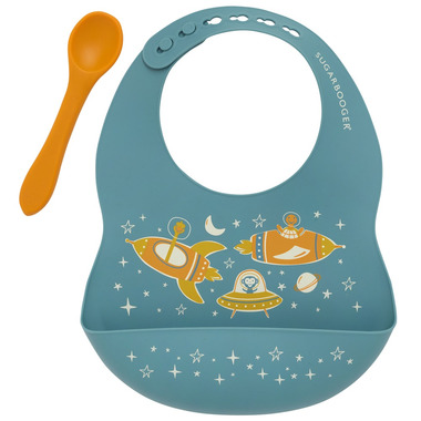 Sugarbooger Fresh & Messy Silicone Bib & Spoon Set Zoom