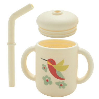 The Hummingbird Fresh & Messy Sippy Cup features a sweet hummingbird flying in a field of flowers. The brand new 6 ounce silicone sippy includes a removable lid and straw.