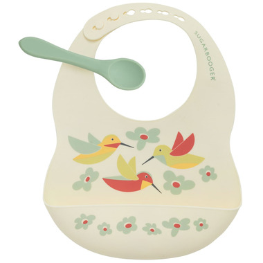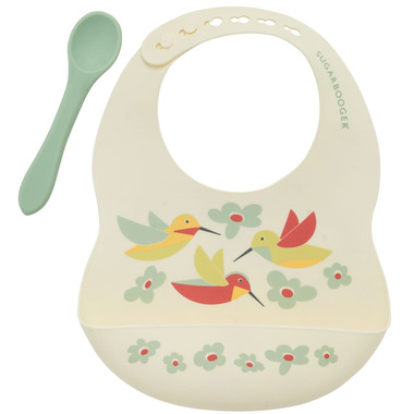 Sugarbooger Fresh & Messy Silicone Bib & Spoon Set Hummingbird