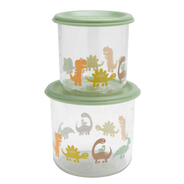 The Good Lunch Snack Containers Baby Dinosaur features adorable dinosaurs in a soft colour palette. Good Lunch Snack Containers are clear, durable, leak-proof, and eliminate the need for plastic bags and keeps food fresh and organized.Food stays fresh and tasty in these clear, durable, leak-proof and safe containers. Sized just right for lunches large or small, BPA-free, odour, stain, shatter and scratch-resistant. Light, practical, and stackable for compact storage, Good Lunch Snack Container Sets come in two convenient sizes to make snack-packing a snap!Perfect for microwaving and freezing food portions, and taking snacks on outings or in school lunches. Use them to prep and store meal ingredients, snacks and more.