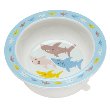 The Smiley Shark Bowl livens up the table at mealtime. The removable suction base is designed to help keep the bowl in place on most smooth surfaces.
