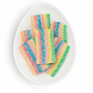 Brighten your celebrations! Sweet and sour fruit-flavored gummies in rainbow hues are dusted in tart sugar crystals to bring a fresh burst of sunshine to your egg hunt.