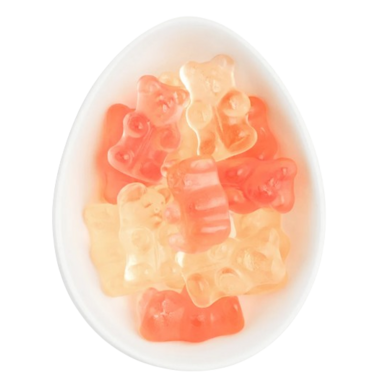 Bubbly Bears: Sugars (Glucose Syrup, Sugar), Gelatin, Citric Acid, Lactic Acid, Calcium Citrates, Natural & Artificial Flavors, Champagne, Malic Acid, Sodium Malate, Black Currant Concentrate, Black Carrot Concentrate. MAY CONTAIN: Milk, Soy, Wheat, Peanuts, Tree Nuts.
