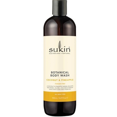 The Sukin Coconut & Pineapple Body Wash refreshes and stimulates the senses, while a nourishing combination of Rosehip, Avocado and Jojoba Oils, along with Shea Butter and Cocoa Butter hydrate and smooth skin. An infusion of Aloe Vera, Nettle, Horsetail and Burdock restores the skins moisture barrier and helps to nourish dry skin.
