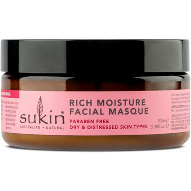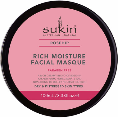 Sukin's cream-based masque is richly hydrating with Rosehip, Kakadu Plum and Quandong to support even the driest of skin types. Formulated with Vitamin E, Aloe Vera, and Pomegranate to nourish and restore skin vitality.