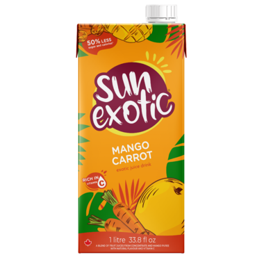 Sun Exotic Mango Carrot Exotic Juice Drink 50% less sugar and calories. Rich in vitamin C. A blend of fruit juices from concentrate and mango puree.