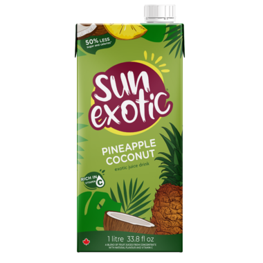 Sun Exotic Pineapple Coconut Exotic Juice Drink, 50% less sugar and calories. A blend of fruit juices from concentrate with natural flavour and vitamin C.